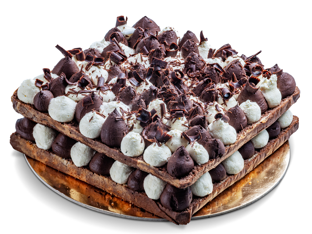 Kakaový dort se šlehačkou a pařížskou šlehačkou.